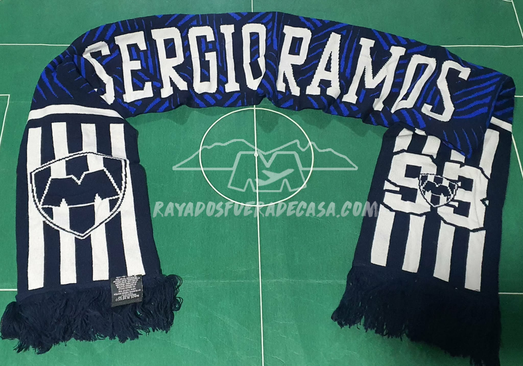 Bufanda doble vista de Sergio Ramos 93 y por el otro lado RAYADOS, unitalla, unisex, 90% acrílico,10% elastano.