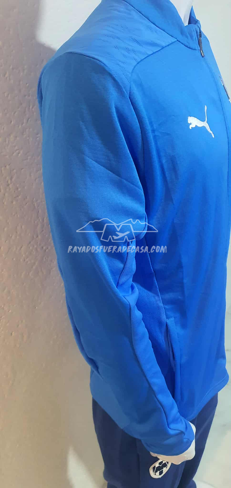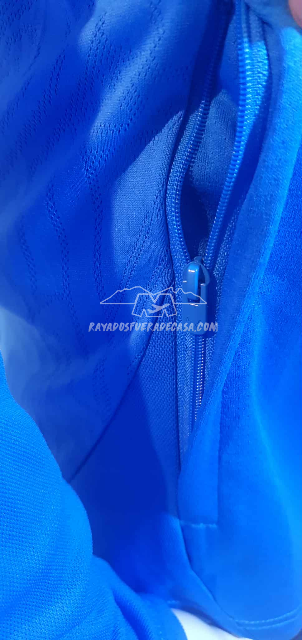 Jacket de cierre completo y cierres en las bolsas a los costados, escudo y logo estampados, ligero de tecnología DRYCELL.