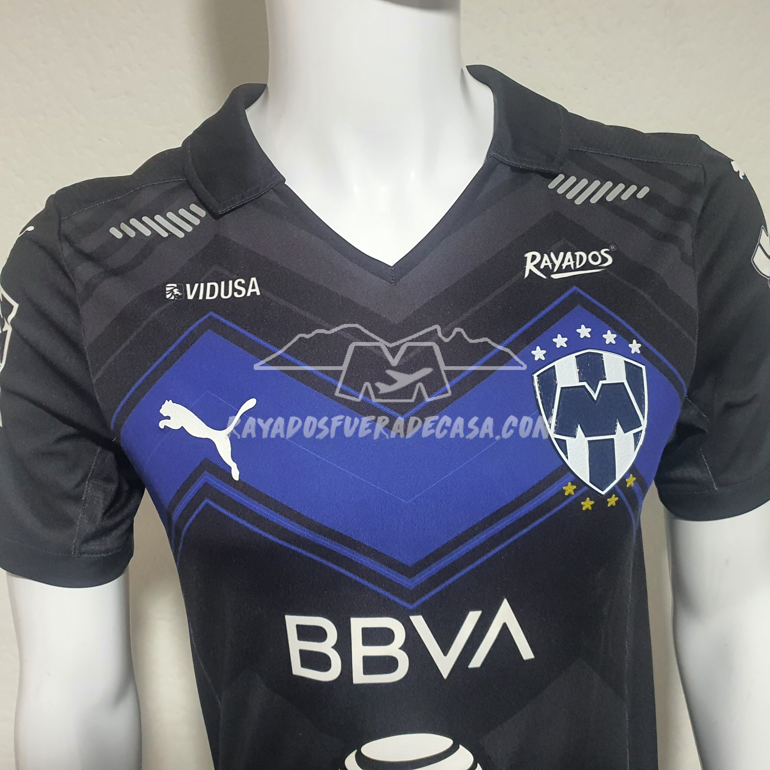 Jersey alternativo versión jugador, logos y escudo plastificados, publicidad AT&T estampada el resto es sublimada, reflejante en los costados del cuello, Parche Liga Mx, elegante con una M color azul en el pecho que a todos nos luce elegante como a Vicent Janssen le quedaba.