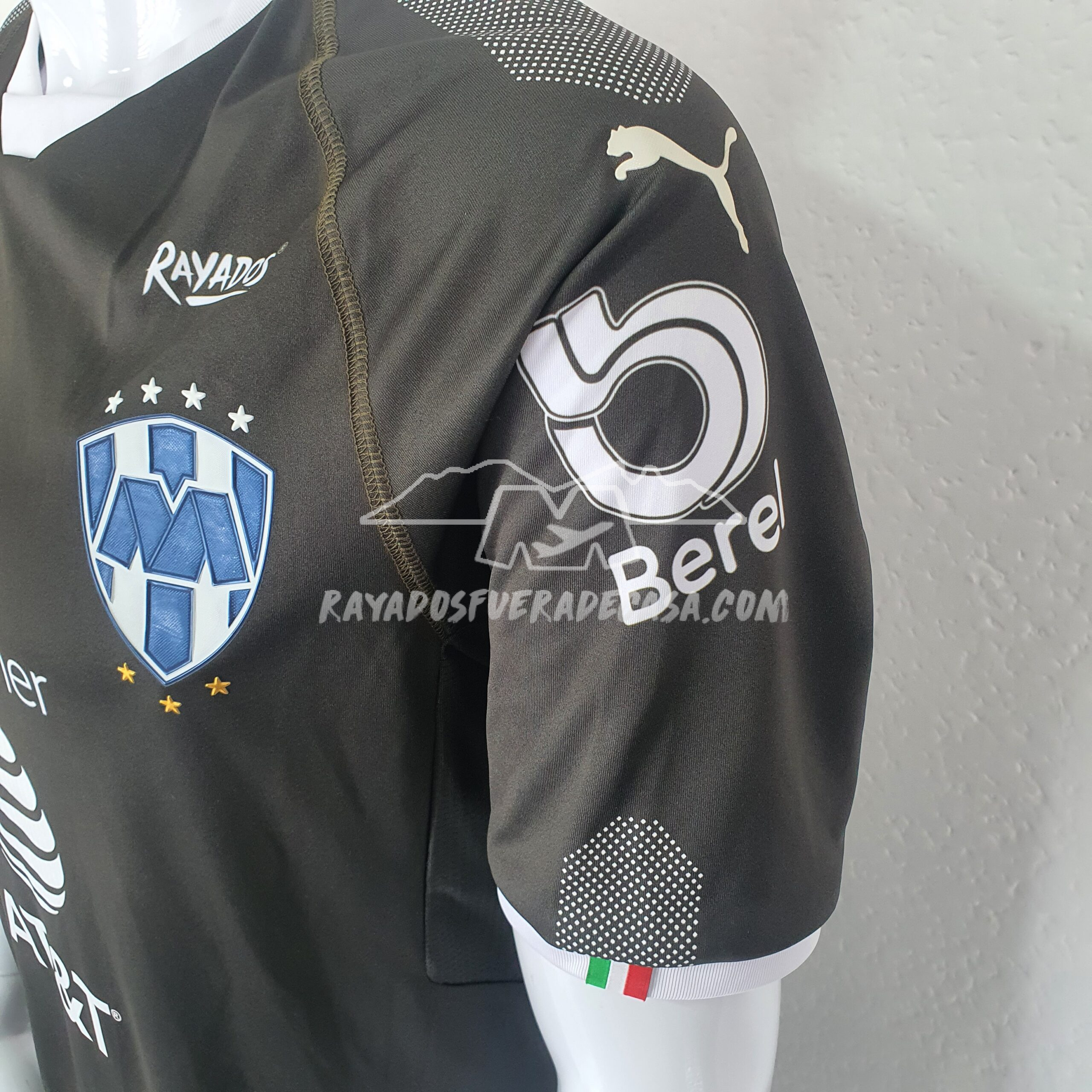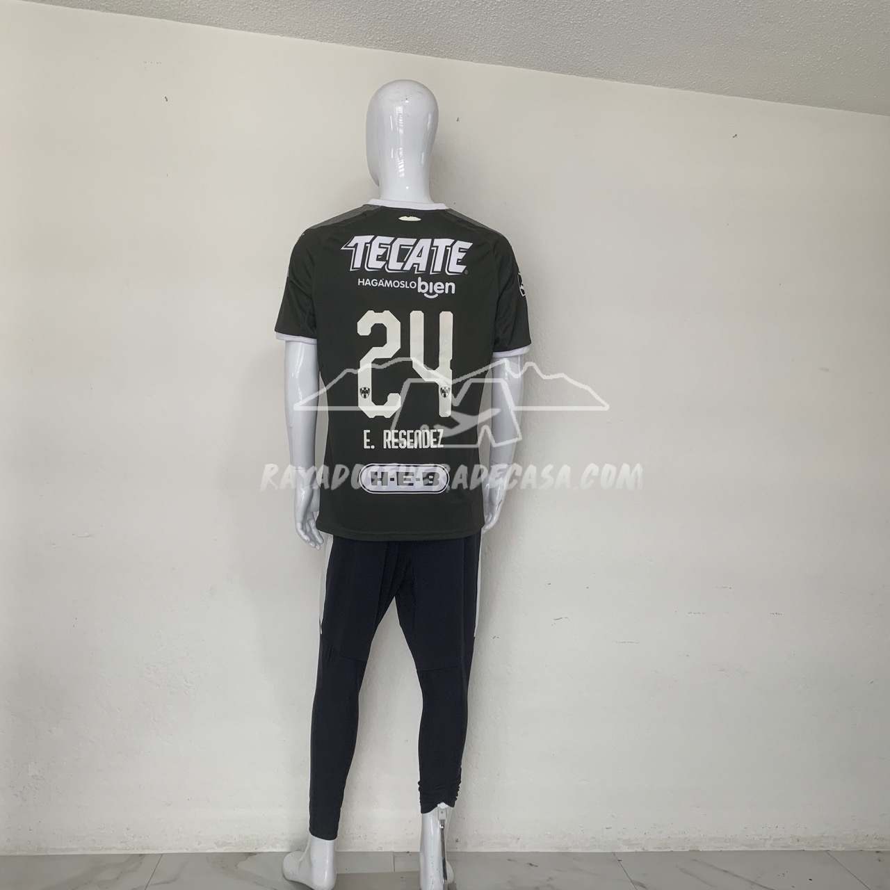 Jersey portero versión jugador, utilería de Edson Resendez #24, publicidad AT&T estampado, el resto sublimado, logos puma y escudo plastificados, un verde militar para verte como general de la armada Rayada.